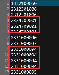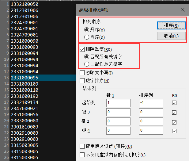 如下图为排序删除重复后结果图: