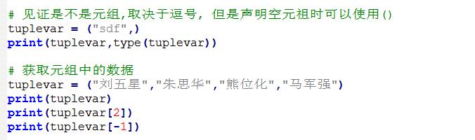 获取元组中的数据 : 跟列表list的取值一模一样 (正向下标,反向下标)