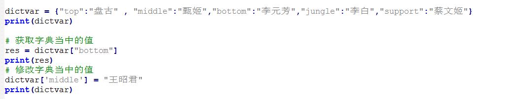 特征 : 可以获取,可以修改,无序排列 底层使用了哈希算法,储存的数据是散列,键值对储存的数据 获取字典当中的数据:可以获取,直接输入冒号左边的键即可取值的数据 修改字典当中的数据:可以修改,直接将要改的值替换掉 键 就可实现修改 一般在命名字典的键时,推荐使用字符串,按照变量命名的字符串.