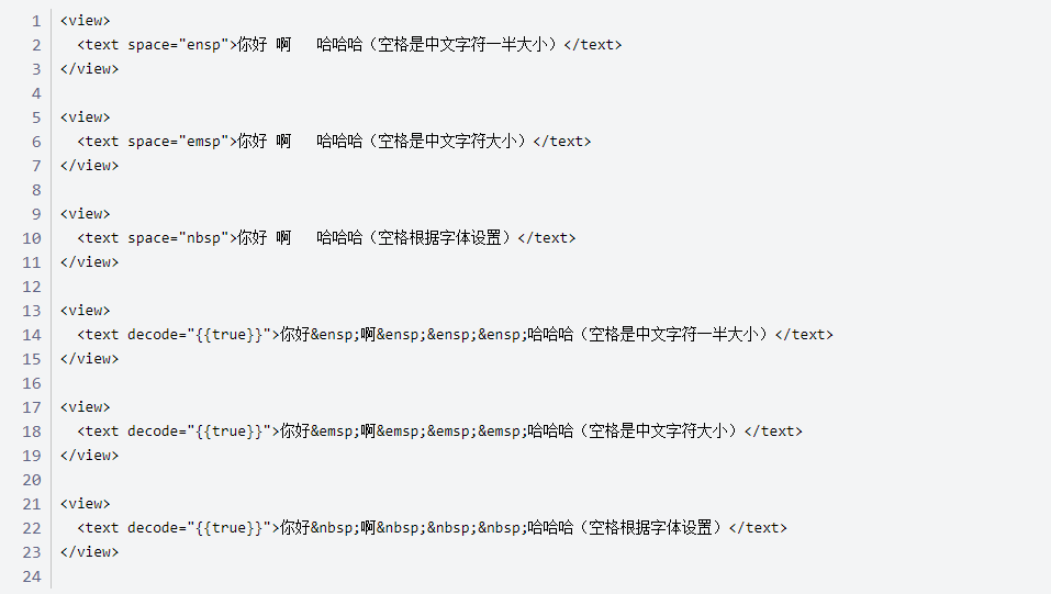 一、空格,换行 小程序中的写法为: