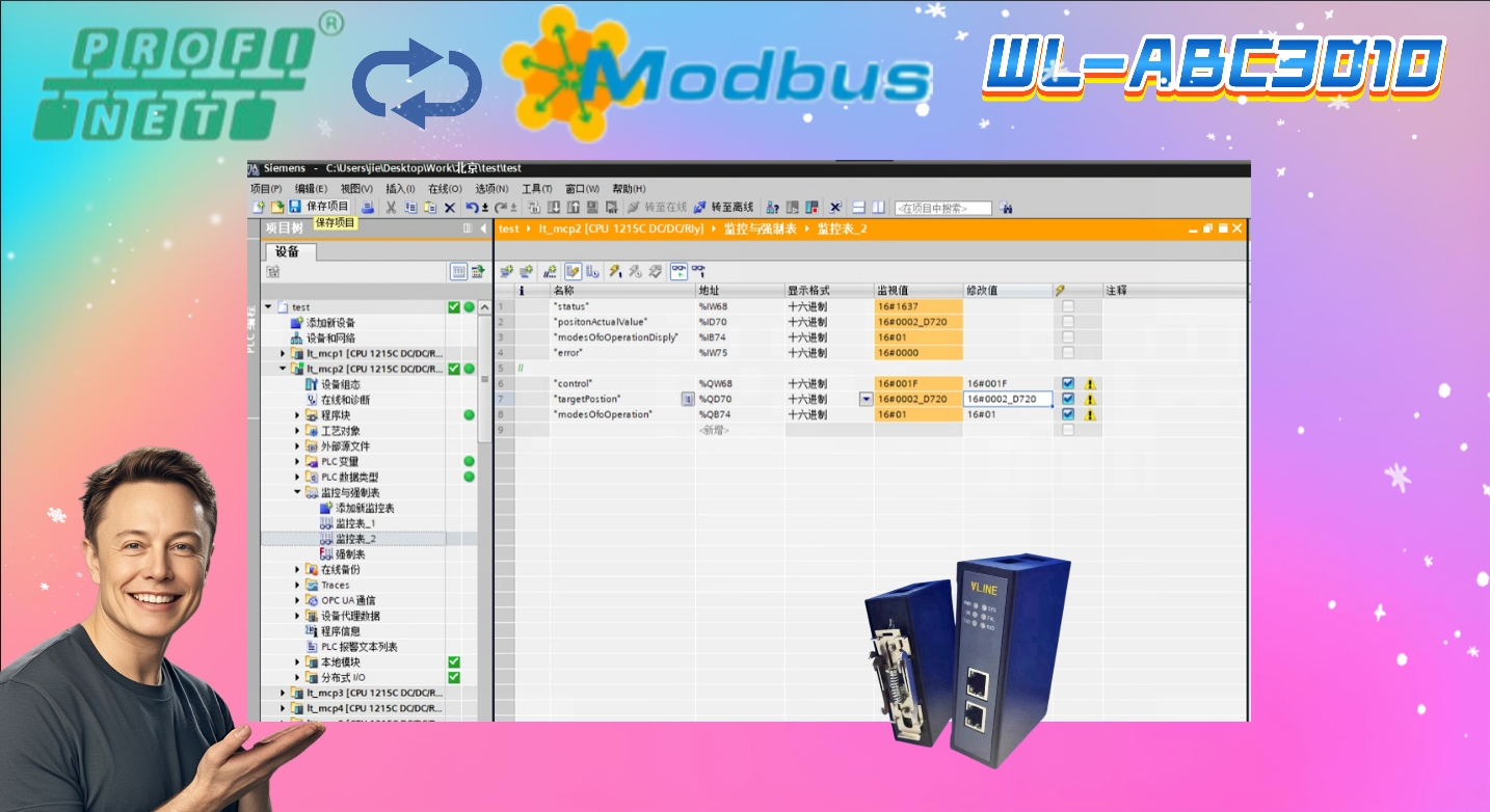 在实施过程中,首先需要对网关进行参数设置。这包括设置网关的IP地址、子网掩码等网络参数,确保网关能够与PROFINET网络正常通信。然后,需要配置网关与ModbusRTU设备的通信参数,如波特率、奇偶校验位等,以保证与ModbusRTU设备的通信稳定。对于西门子PLC,需要在编程软件中添加网关的设备描述文件,以便PLC能够识别和与网关进行通信。最后,将ModbusRTU设备接入网关的相应接口,完成整个系统的集成。