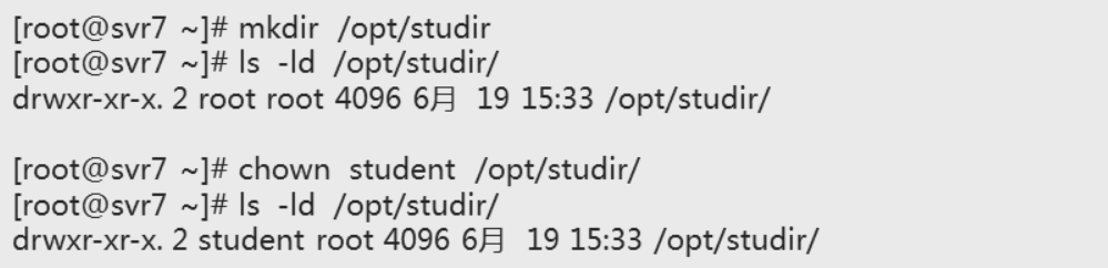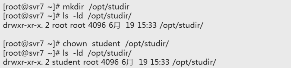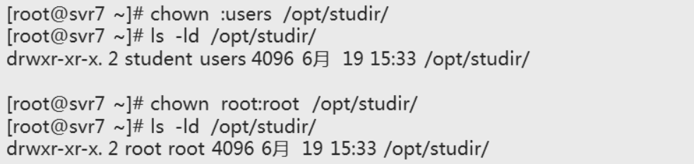 #chown 属主:属组 文件/目录 更改文件/目录的所有者和所属组 常用命令字 -R 递归