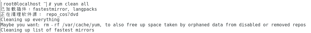 为了提高检索速度,yum会在本机缓存数据,当软件园地址有变化,或者需要检查仓库时,建议先清理所有缓存