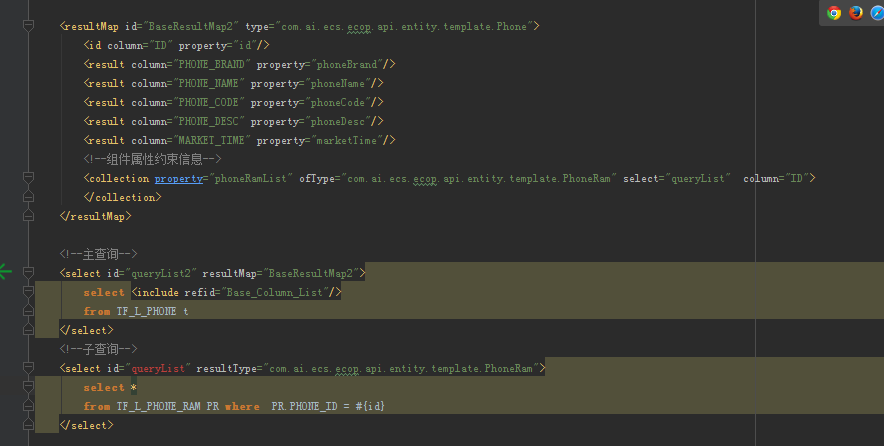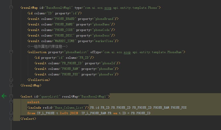 手机主表够构造14条数据,每条手机构造了2-3条不等的内存表数据。xml文件如下,利用swagger做测试,查询第一页,每页查5条,返回的结果应该是total为14,返回数据5条,但结果却是total为26,数据3条,我说下问题所在:我们用的分页插件就是在我们的sql外加上具体数据库对应的分页方式(oracle用 RowNum,mysql 用limit),分页查询的时候把每一条多侧的数据当成一条分页数据,那这样可能查出来的五条都对应同一条主表数据,那这时候映射过后就只有一条数据。记住是先分页查询后映射数据结构。