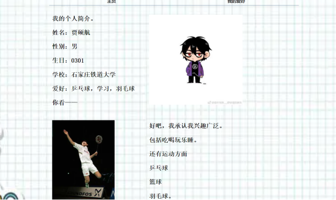 今天完成了php课上的作业,给自己设计一个 个人主页