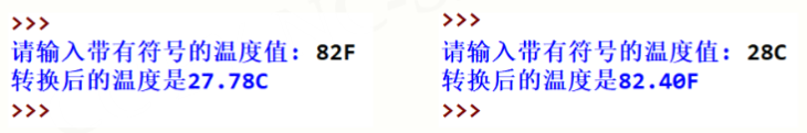 (2) 输入输出的华氏度可采用大小写字母F结尾,温度可以是整数或小数,如:87.65F指华氏度87.65度;