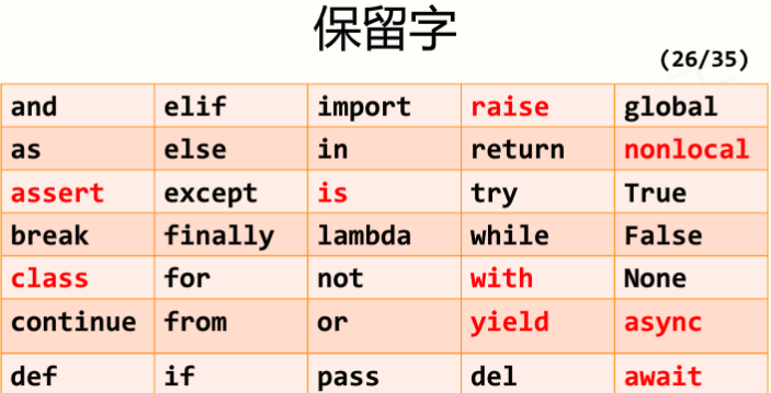 3.4.3 保留字:被编程语言内部定义并保留使用的标识符