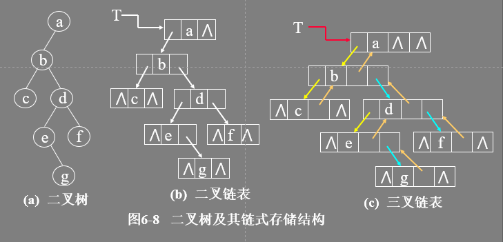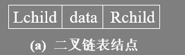 ① 二叉链表结点。有三个域:一个数据域,两个分别指向左右子结点的指针域