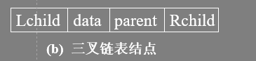 ② 三叉链表结点。除二叉链表的三个域外,再增加一个指针域,用来指向结点的父结点。