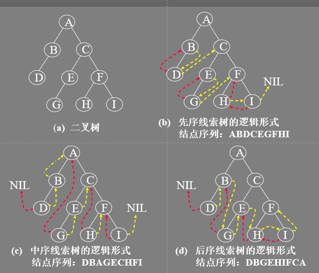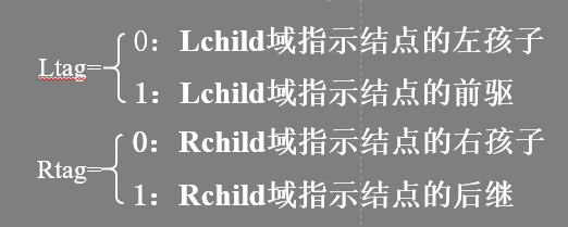 (1)若结点有左孩子,则Lchild指向其左孩子,否则,指向其直接前驱;