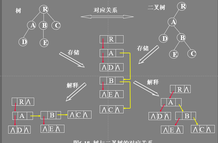 2.从物理结构来看,树和二叉树的二叉链表是相同的,只是对指针的逻辑解释不同而已