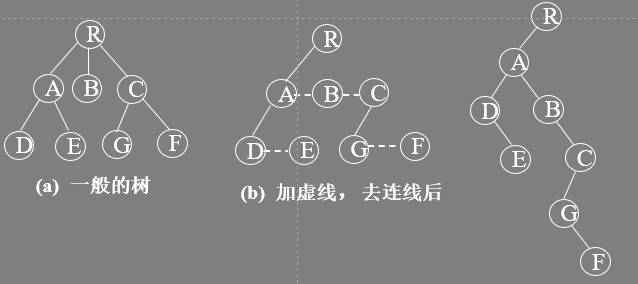 3.所有沿右链往下的右子结点均是原来树中该结点的兄弟结点。