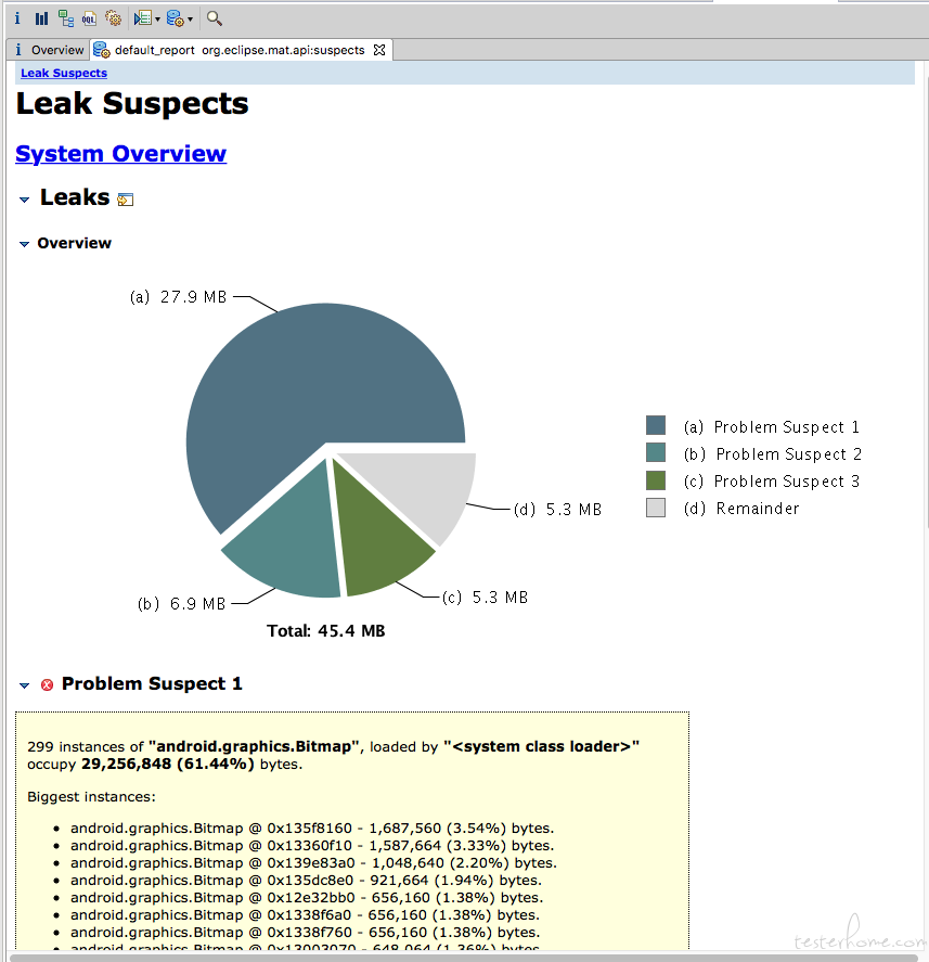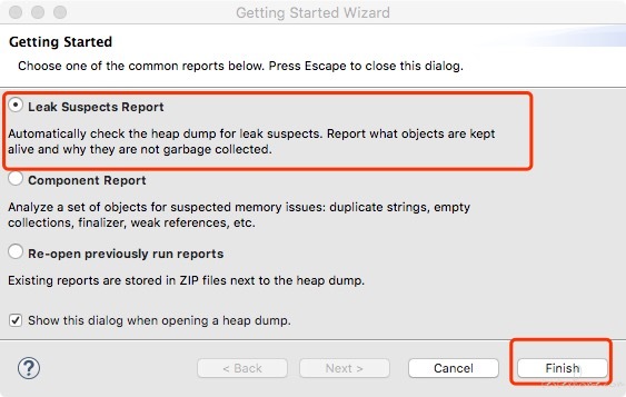 打开hprof1.hprof文件,选择Leak Suspects Report,然后finish