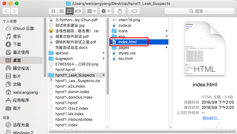 在成功导入hprof1.hprof文件后,会发现桌面生成了一大堆文件,找到.zip文件,解压,提取出index.html文件给开发就行了。