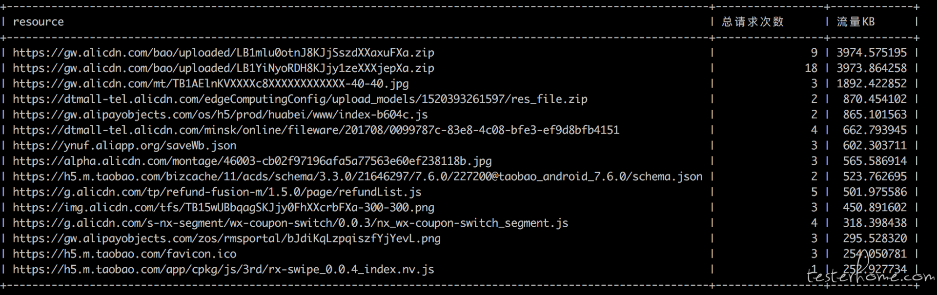 这样就比较清晰了了解到具体流量消耗数据,哪些消耗最多,哪些频繁请求次数最多等等,再做针对性的分析做处理。