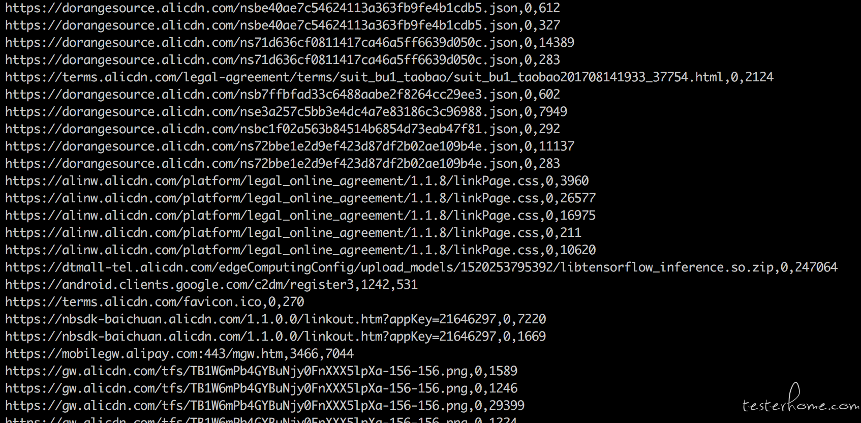 逗号做分隔,资源地址、请求数据大小、返回数据大小,单位是字节数。