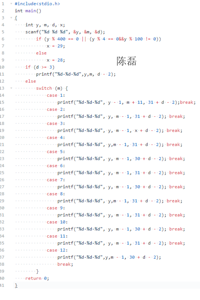 本题目要求读入年、月、日,然后判断前天日期。