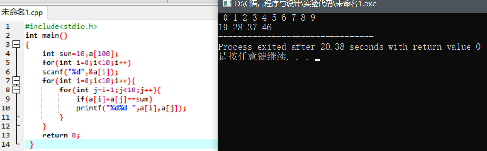 解法一:采用穷举法,从数组中任意取出两个数字,计算两者之和是否为给定的数字。