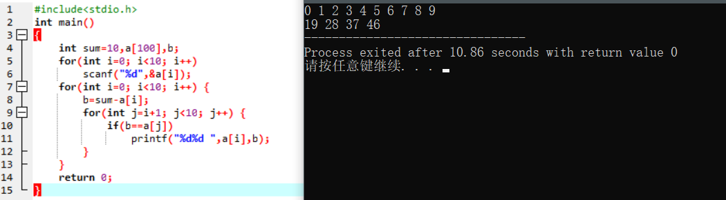 解法二:对数组中的每个数字arr[i]都判别Sum-arr[i]是否在数组中。