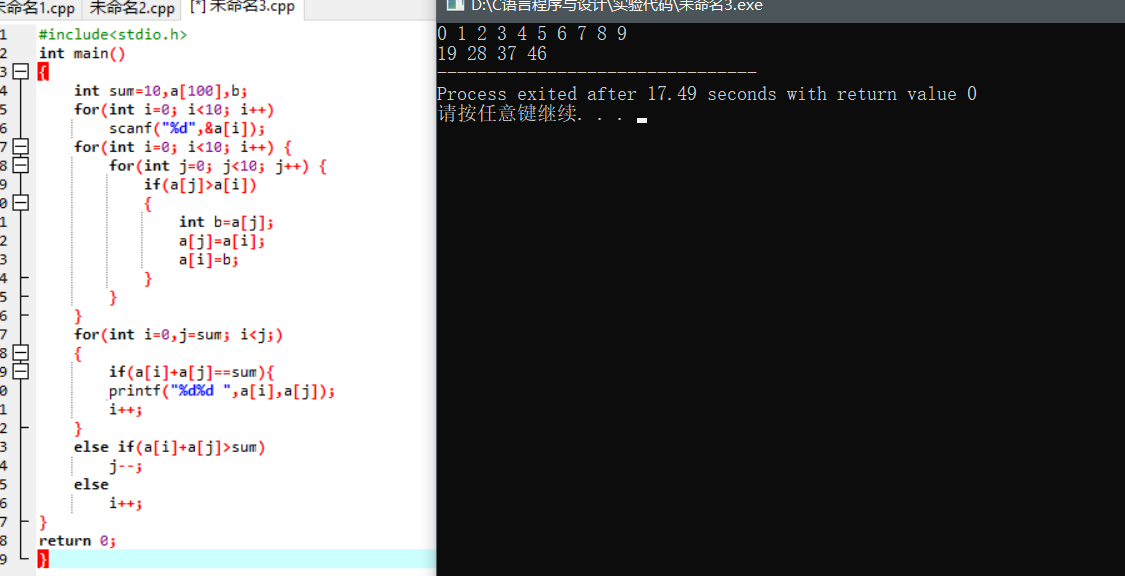 第一种解法比较简单,写起来也很容易,但是效率不高。第二种解法,效率有所提高,但复杂度没什么变化。第三种解法将数组按一定顺序排序后从首尾向中间寻找,与前两种相比大幅度降低了复杂度。