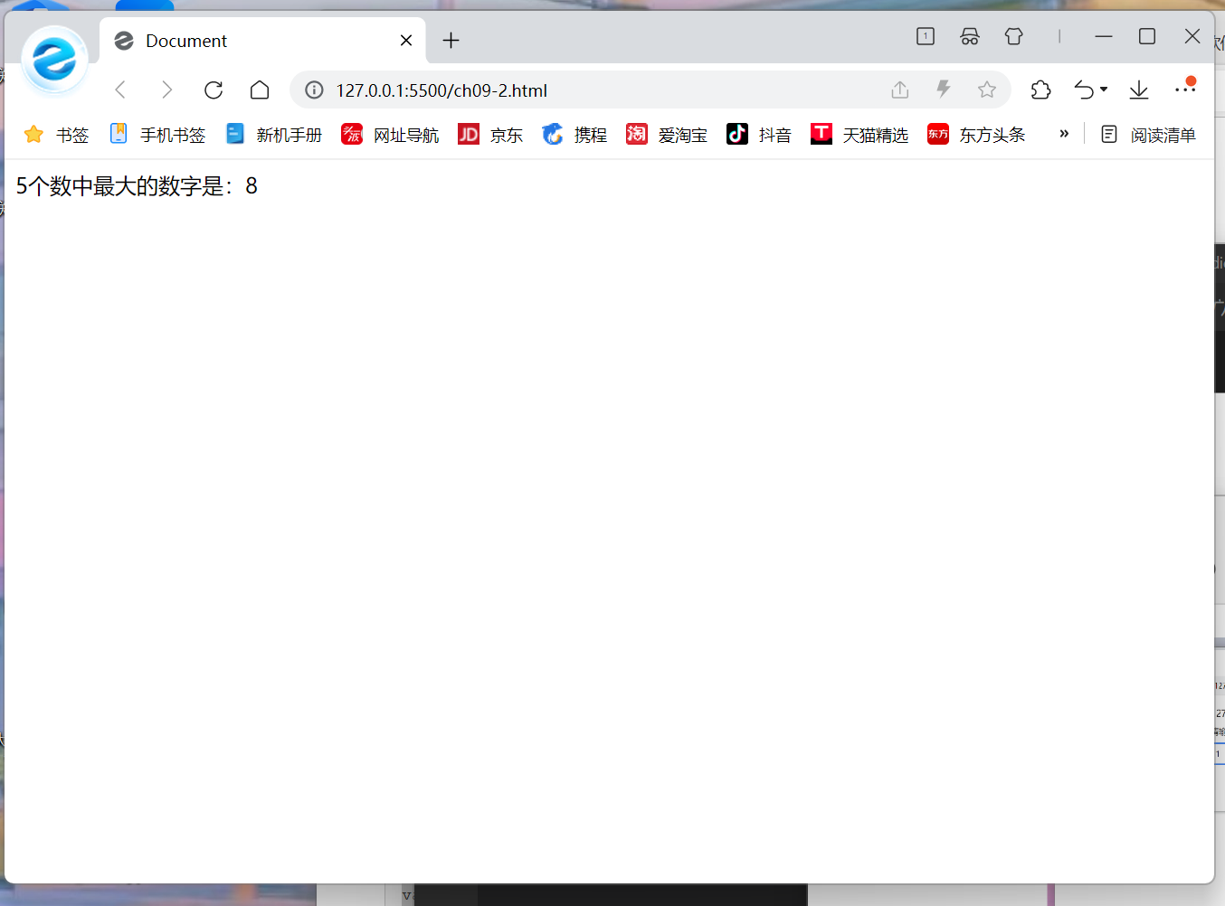 document.write('5个数中最大的数字是:'+b);