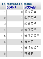 我们同过id和pid两个字段来连接父级分类和子集分类,这样就可以找到某一级分类的祖先和它的后代,例如顶级分类>华语歌手>流行歌手>流行男歌手>周杰伦;