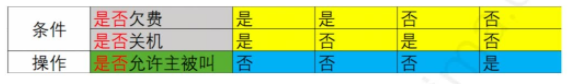 - 判定表一般适用于条件组合数量较少的情况(比如4个条件以下)