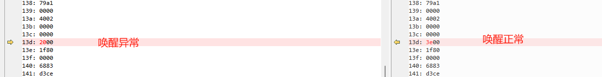 问题分析:涉及到休眠唤醒后之类出现的问题,一般都是往休眠过程供电掉电、寄存器复位等方面去排查。