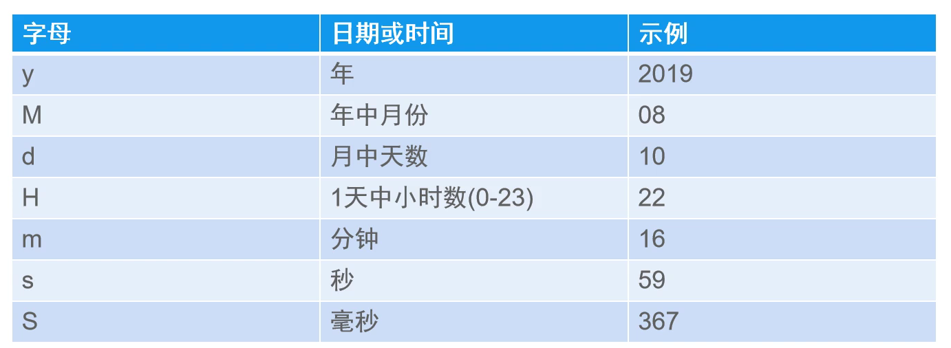 常用的时间模式字母: