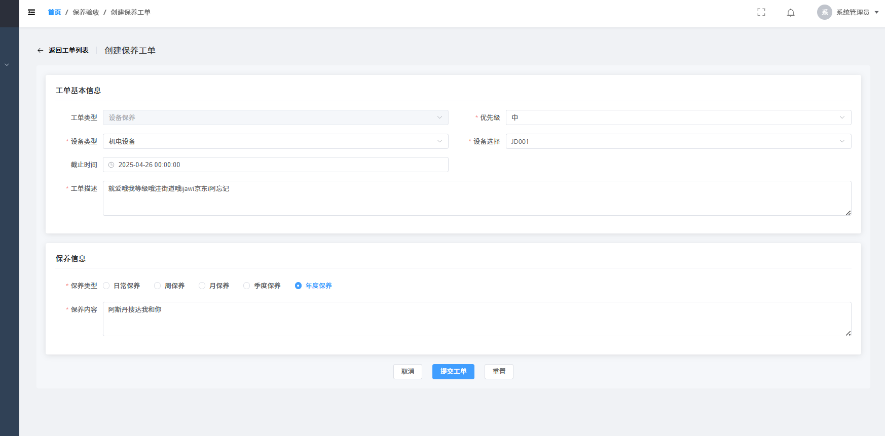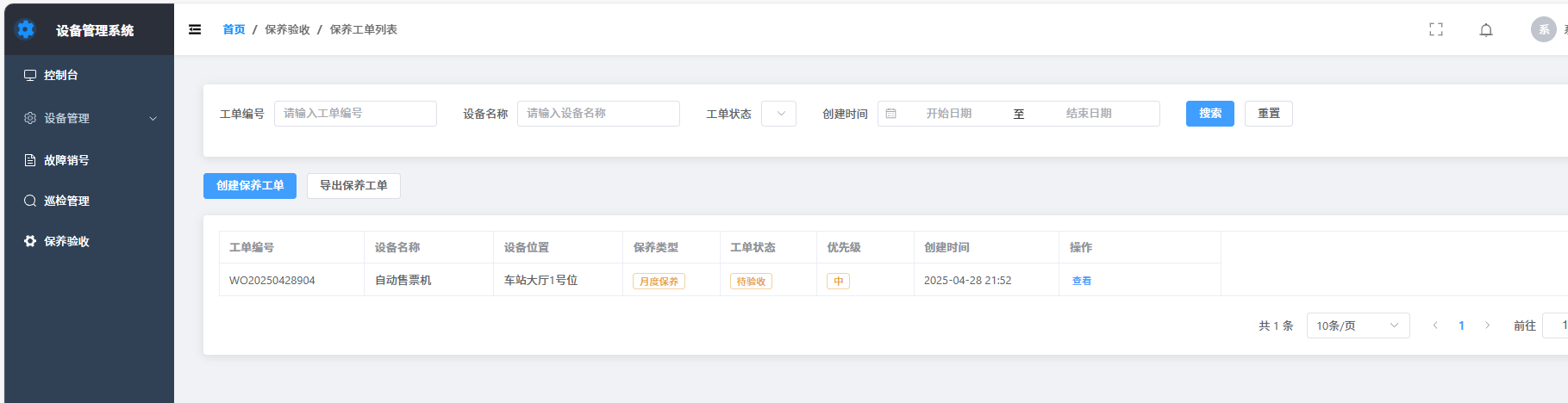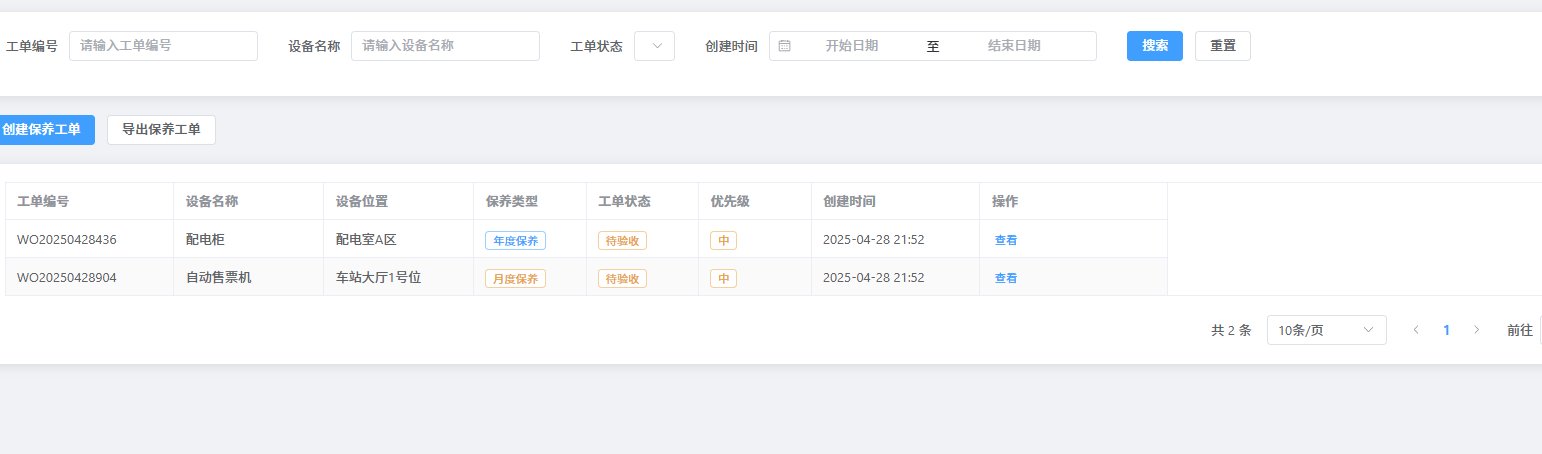保养工单列表界面