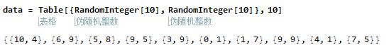 data = Table[{RandomInteger[10], RandomInteger[10]}, 10] 这次要用到的数据