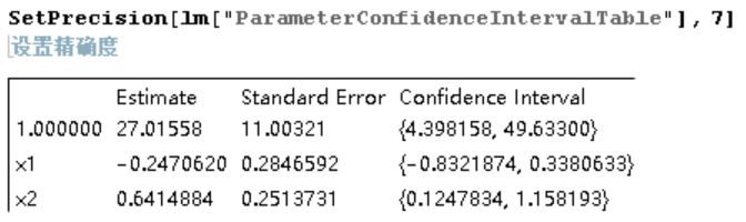 lm[{"RSquared", "AdjustedRSquared"}]4.预测值和预测的置信区间
