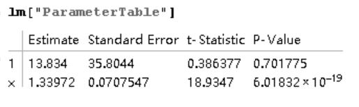 lm = LinearModelFit[data2, x, x] lm["ParameterTable"]