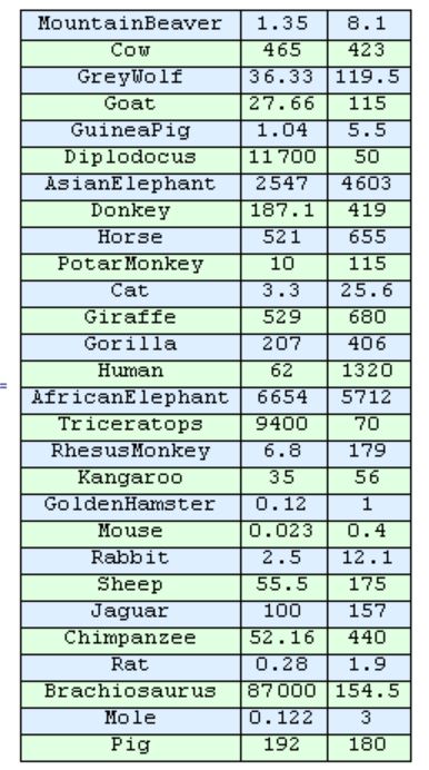 data = ExampleData[{"Statistics", "AnimalWeights"}]