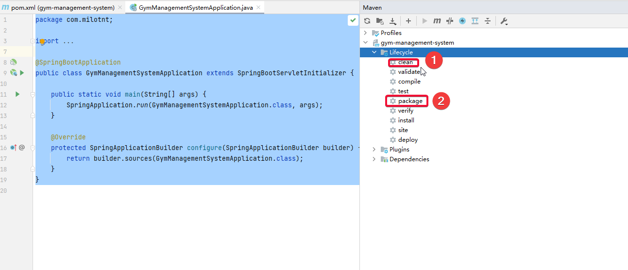 4、打包,先点击clean,在点击package