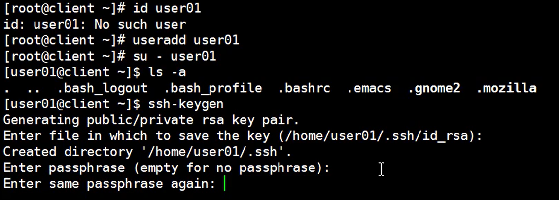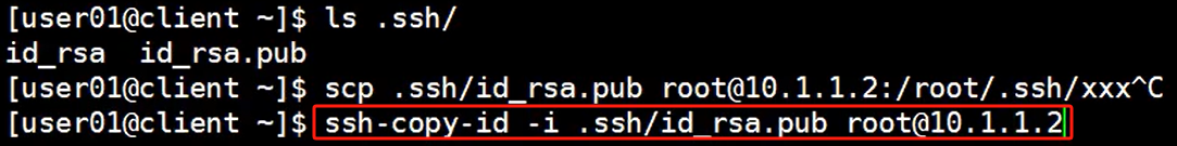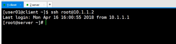 需求:client端有一个用户user01,该用户使用root用户免密码登录server端