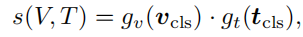 VTC:现存的预训练模型使用点积或依靠transformer模型中的模块得到跨模态交互信息。以上都受制于两种模态信息的语义信息不同。VTC将两种模态信息输入到相同的语义空间,再进行相似度的计算。如下: