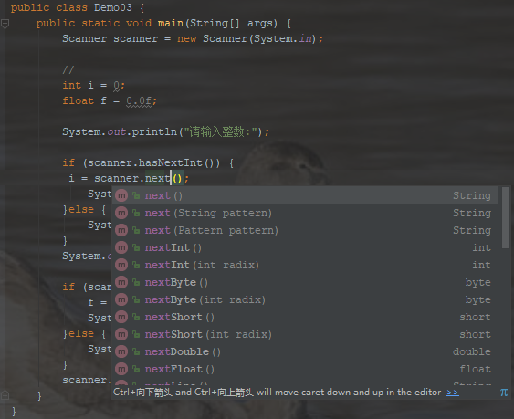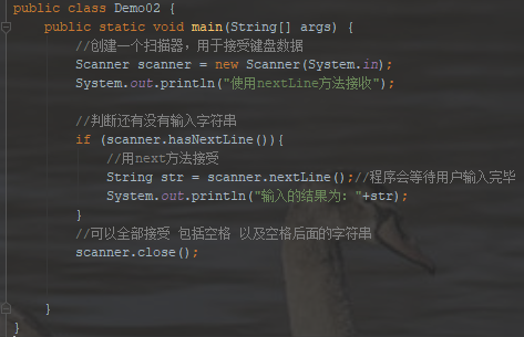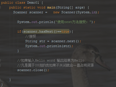 2.对输入有效字符之前遇到的空白,next()方法会自动去掉