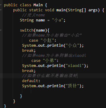 switch case 语句判断一个变量与一系列值中某个是否相等,每个值称为分支