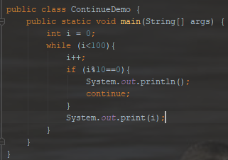 例如:(i%10==0)在这种条件下使用Continue就不会输出能被10整除的数