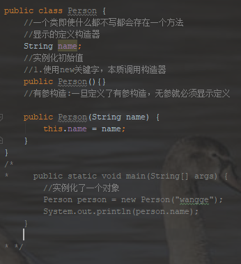 3.倘若类中已存在有参构造函数,则编译器不再提供默认无参构造。实例化对象时需赋值,不然报错。