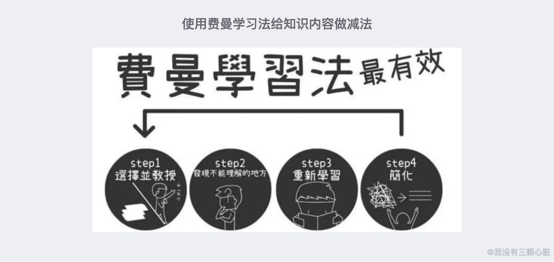 这也就是为什么费曼学习法(简单说就是把书读薄)被称为世界上最好的学习方法的原因了。