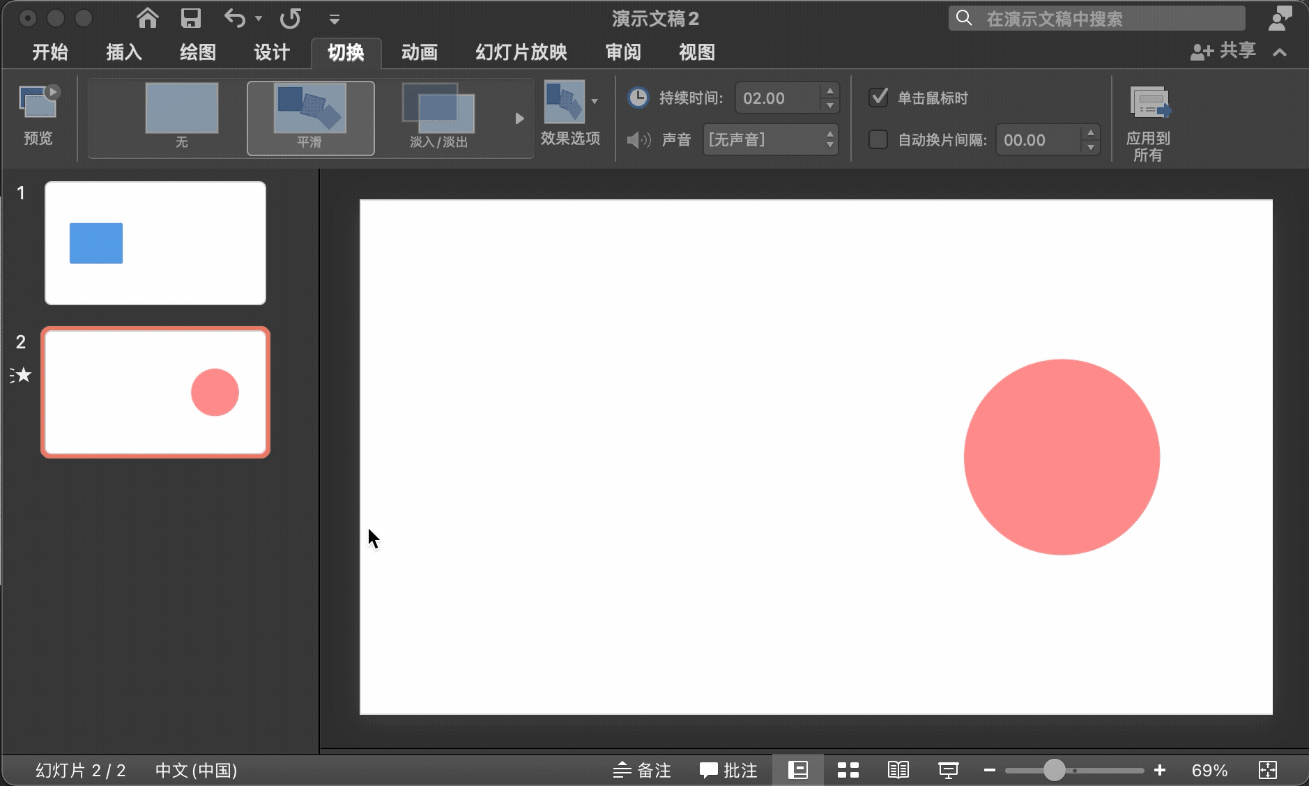 其中最重要的原理就是「平滑」转场,如果你在两页 PPT 之间加上「平滑」,那么相同的元素就会自动过渡。