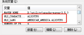 保存查询到的值:NLS_CHARACTERSET = AL32UTF8
