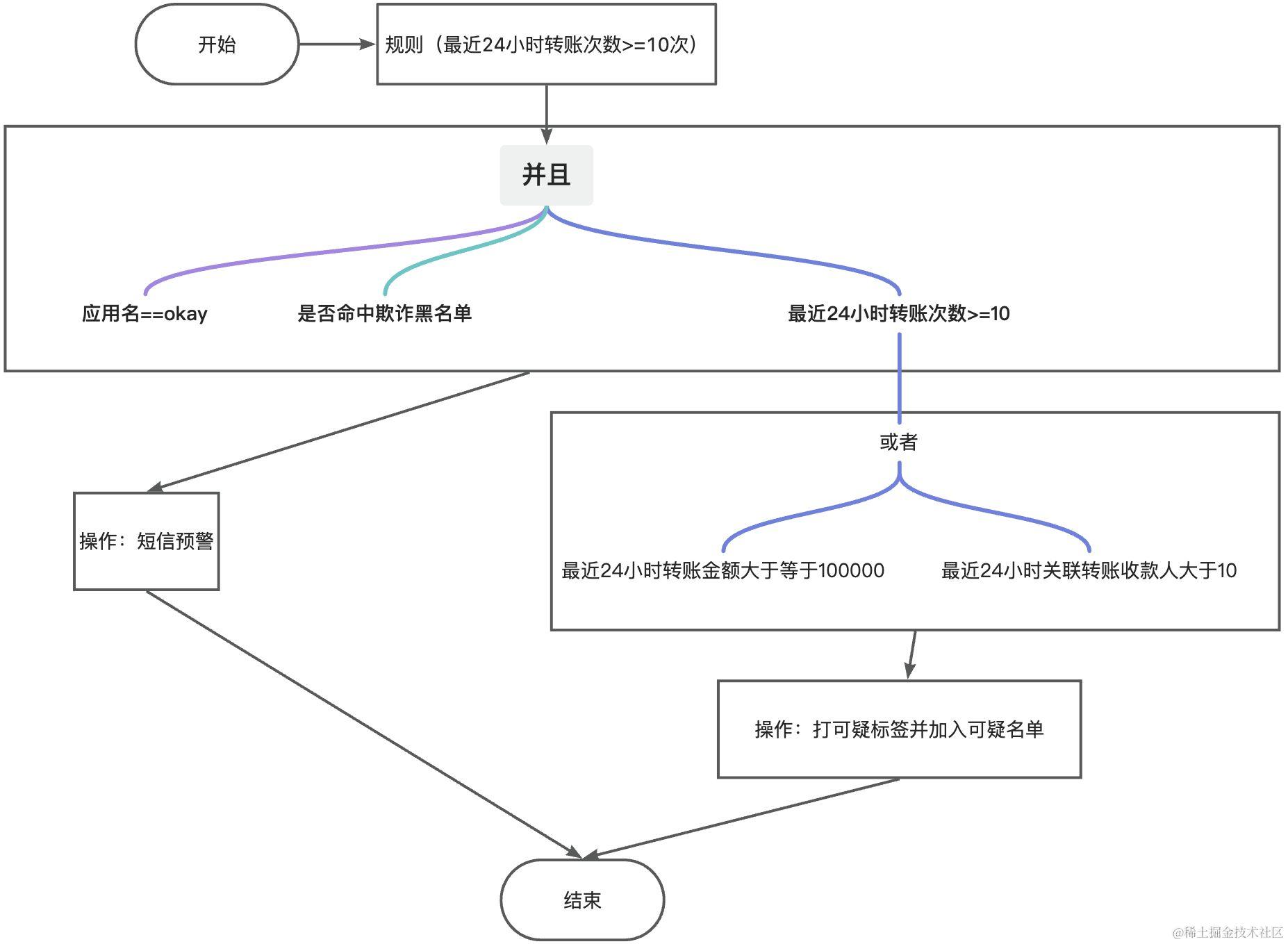 需要注意的是规则条件应该都是灵活可配置,并不是上面这样并列,可以任意复杂的组合。