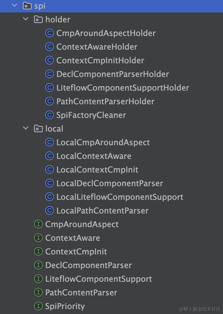 如上是LiteFlow的源码项目,直接看liteflow-core下的spi包。