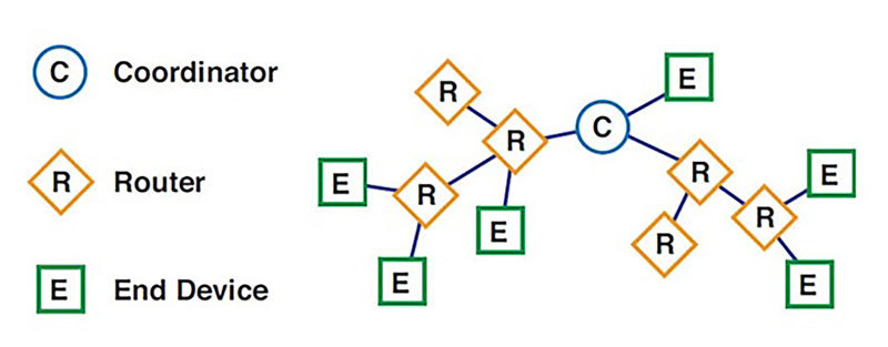 5.容量大:Zigbee可以采用星状,片状和网状的网络结构,最多可以形成65,000个节点的大型网络。