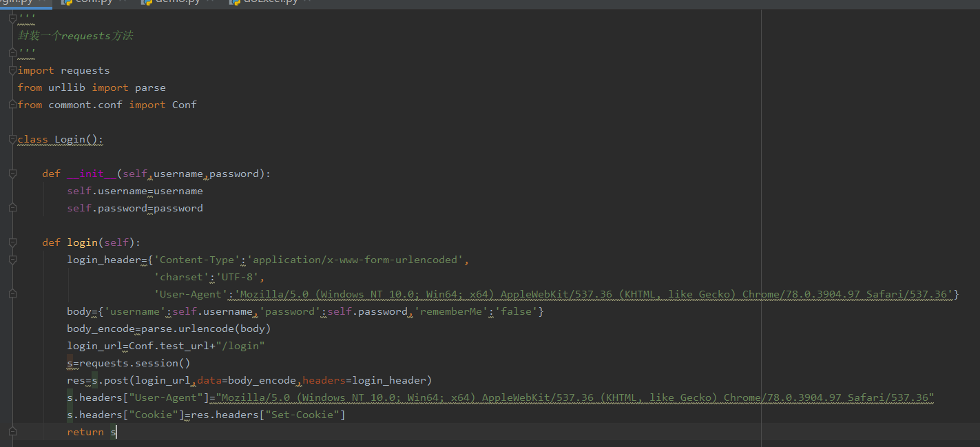 2、不要直接将res.headers更新到s.headers,主要看登录接口返回的token的key和其他需要鉴权请求headers里面的token key是否一样,我就因为登录返回的是为set-cookie 其他接口请求,的key为 cookie 调试了大半天,才找到原因。一定要细心观察。