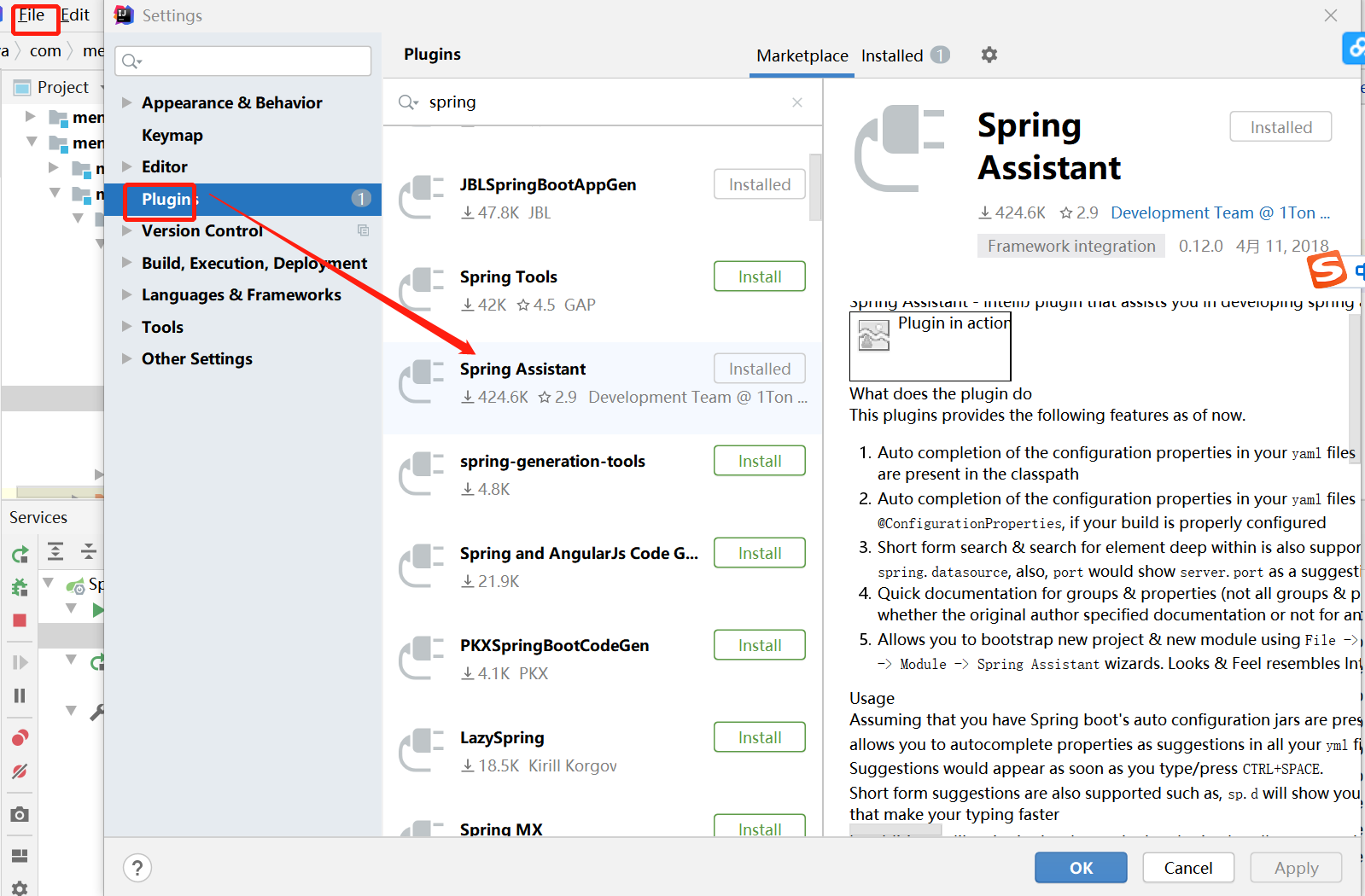 安装 spring assiant插件