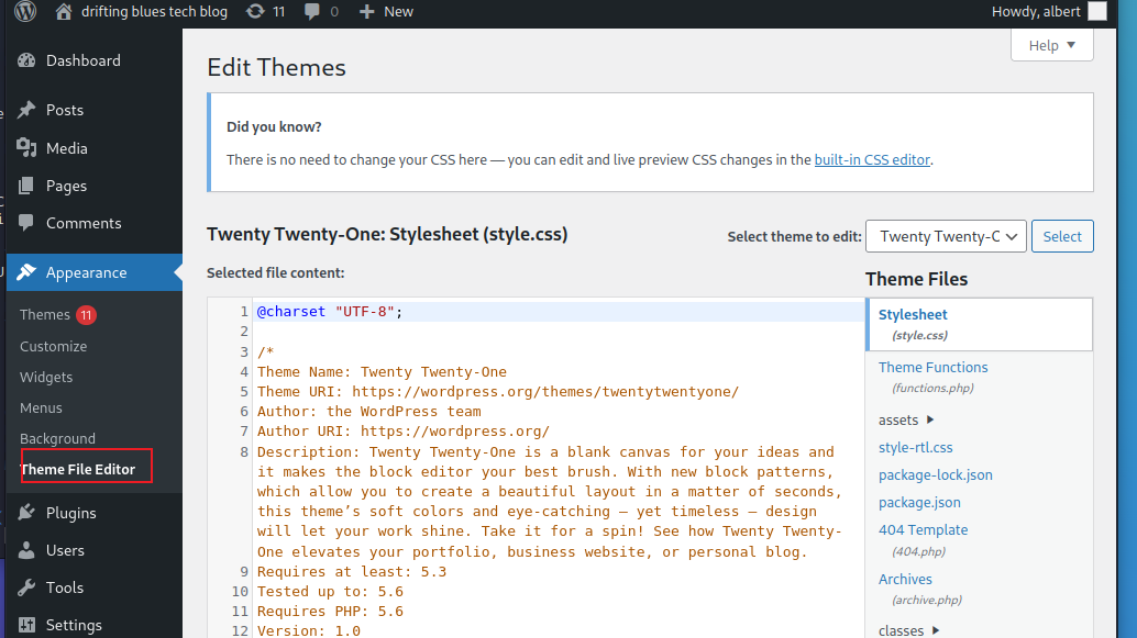 5:成功登入。在后台将index.php文件中插入php-reverse-shell